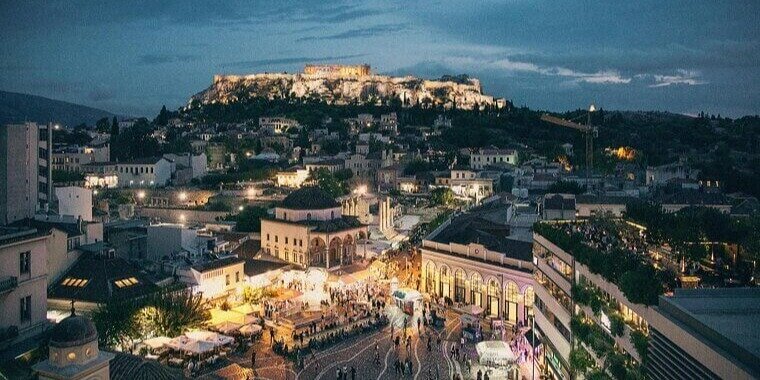 Vibrant piazza with cafés
