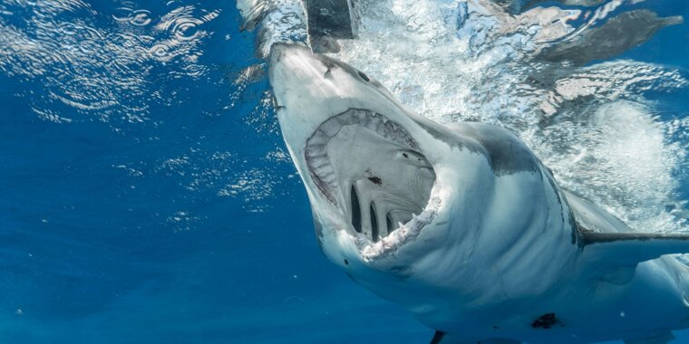 Great white sharks top many marine food chains, and occasional attacks on humans highlight their status as dangerous predators.