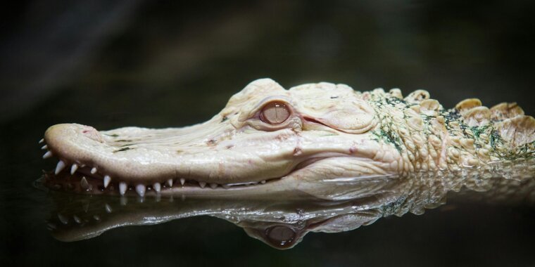 American alligators ambush prey near water’s edge and can inflict devastating bites on animals or people entering their territory.