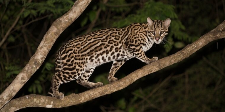 Ocelots are medium-sized wild cats with sharp claws and teeth, capable of injuring humans if handled or cornered.
