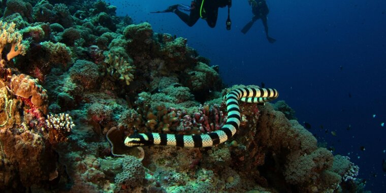 Sea snakes have highly potent venom, and while usually shy, they can bite divers or fishermen when caught or grabbed.